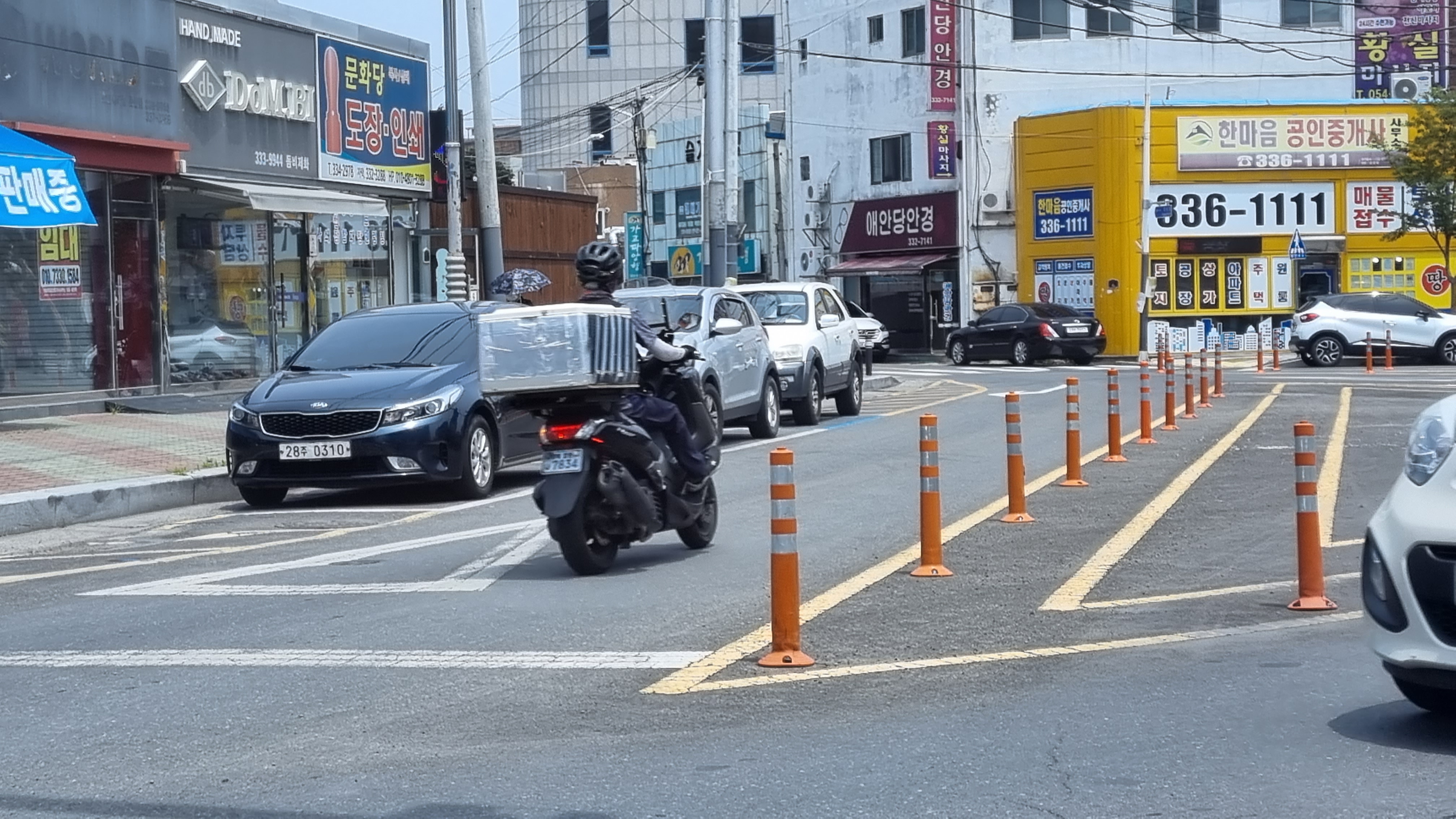 완산오거리에서 오토바이 한대가 역주행 하고 있는 모습이 카메라에 담겼다. 오토바이(이륜차) 주행에 많은 시민들(운전자포함)이 위험과 문제점을 지적하고 있으나 오토바이 단속은 이루어지지 않고 있다. 경북지방경찰청에서 시민들의 적극적인 제보를 기다린다고 알리고 있다.